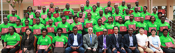 At least 50 researchers & extension staff and external cooperative agronomists have successfully completed an intensive training on cultivation and processing technologies of tropical food crops. The 3-week training, held at Rubona station in Huye District from August 21 to September 08, 2017, was provided by Chinese Academy of Tropical Agricultural Sciences (CATAS).